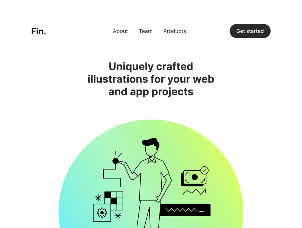 Fin illustrations is a set of black-white outlined style modern illustrations focused on payments, bank & finance categories. It comes with a pack of 24 hero illustrations in vector format.